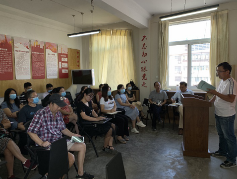 主任朱海军对以案促改工作进行动员并对本学期工作进行部署安排:一是开学后有老生教学任务的老师需做好准备;二是上学期教学资料的归档;三是对本学期新订教材进行清查;四是进行常规教学准备工作并强调工作纪律。