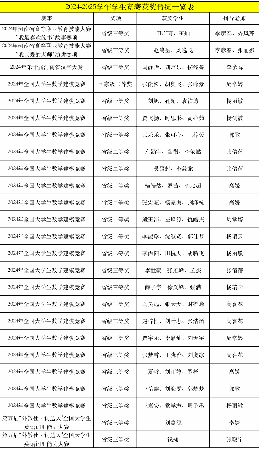 2024-2025学年学生竞赛获奖情况一览表